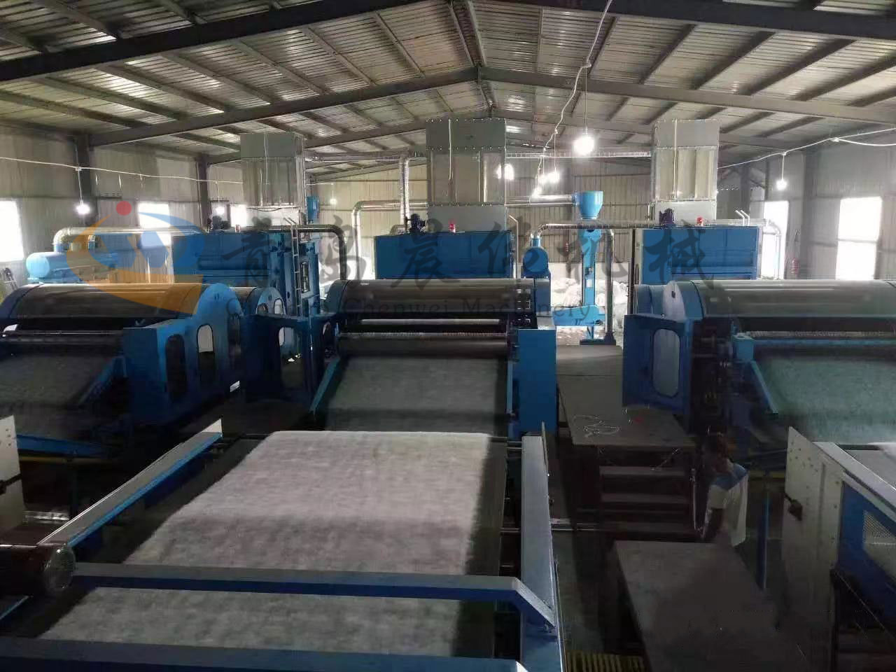 該生產(chǎn)線用于生產(chǎn)高檔家用紡織材料仿絲棉, 仿絲棉廣泛應(yīng)用于服裝、床上用品、家具等。根據(jù)客戶要求可分四機(jī)頭、六機(jī)頭、七機(jī)頭等。機(jī)頭越多,產(chǎn)量越高。